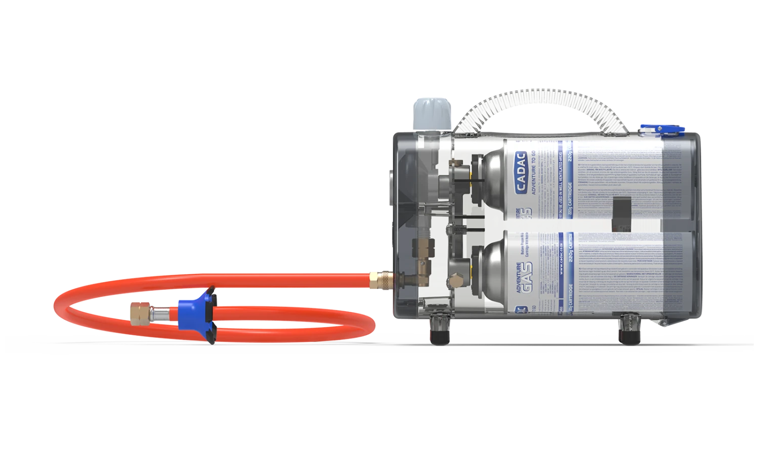 • The gas supply hose is removable as it is fitted with a CADAC QR/Quick Release connector.