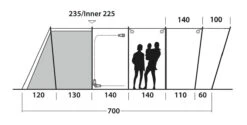 Sleeping seven in three Ambassador Master Bedrooms with Dark Inners and Quick & Quiet Inner Doors, the Vermont 7PE offers spacious, light-filled tent living. Easy opening of the steep front door under the extended front plus twin side D-doors with mesh offers flexible access and extends ventilation options. Pre-bent poles deliver superb stability plus steep walls to maximise internal space and offer full headroom. Home from home comfort and convenience is assured with Quick & Quiet Access to zone 2, the Outwell HookTrack System, Easy Pegging System, Cable Entry, zip-up curtains, Rear Ventilation System and low side vents.